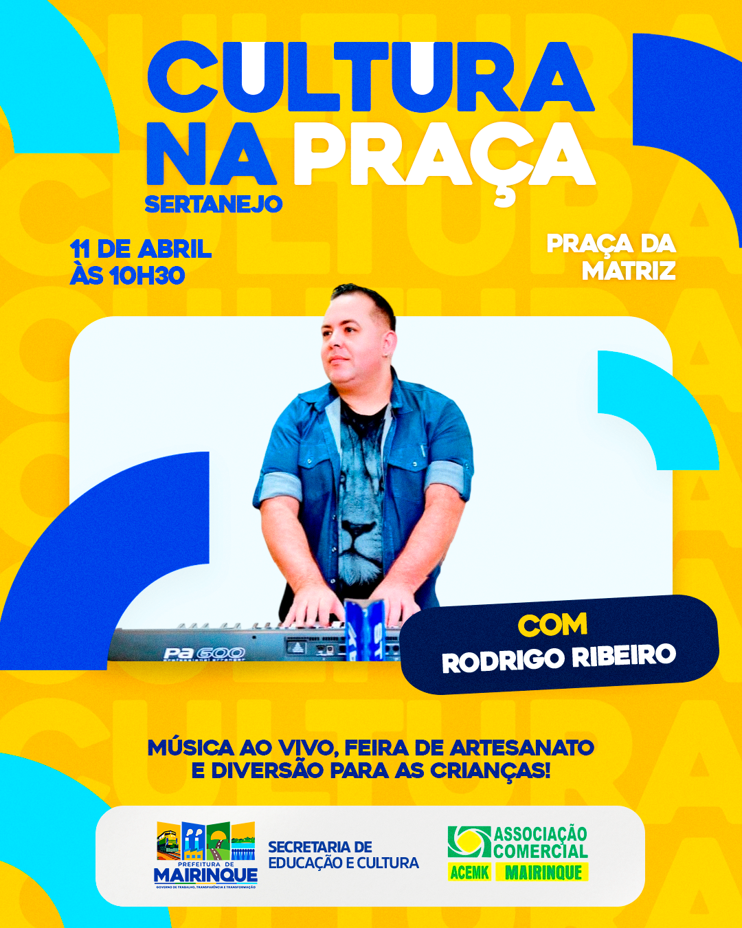 O evento será realizado na Praça da Matriz, a partir das 10h30, e contará com apresentação com o artista Rodrigo Ribeiro, proporcionando um momento de lazer, entretenimento e valorização da cultura local.