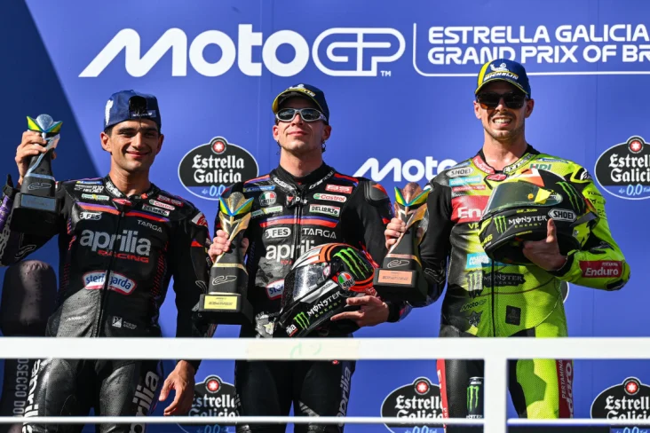 Ainda no sábado, tivemos a Sprint Race (17 voltas). Vitória de Marc Márquez, com uma ultrapassagem espetacular sobre Di Giannantonio. Destaque também para Jorge Martín, que voltou ao pódio após um 2025 complicado — como ele mesmo disse: “o pai tá on”.