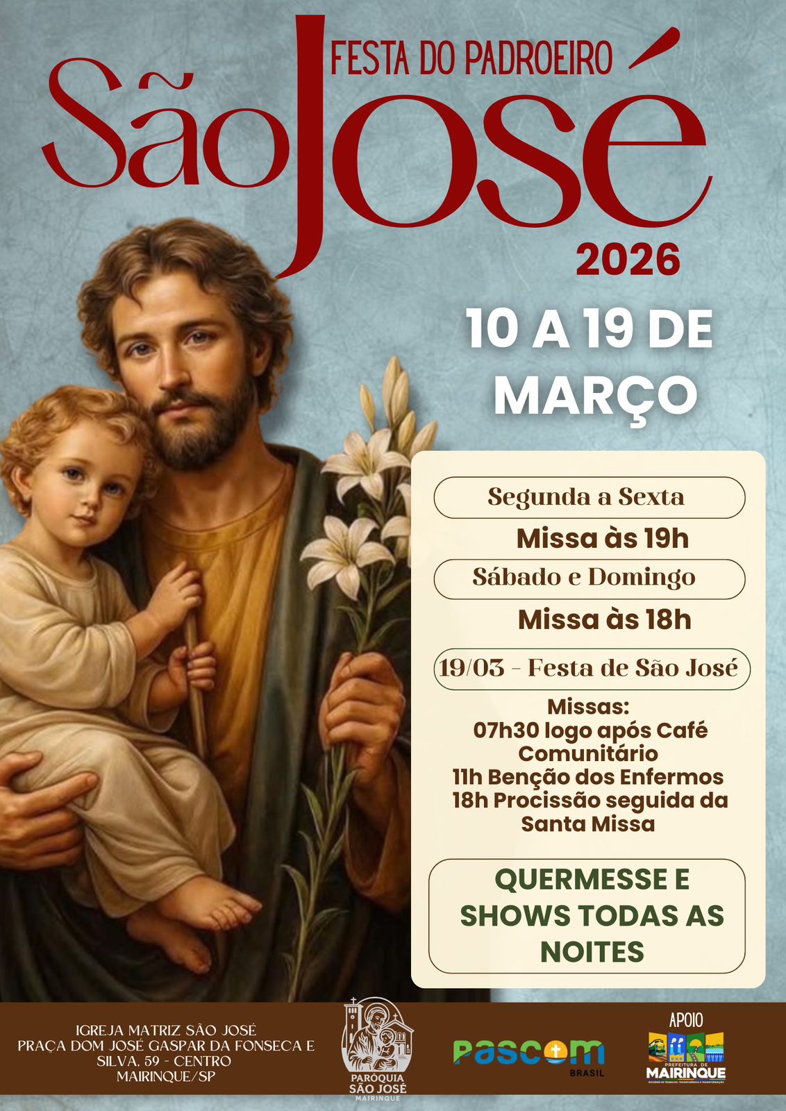 A cidade de Mairinque se prepara para celebrar a Festa do Padroeiro São José 2026, que acontece entre os dias 10 e 19 de março, na Igreja Matriz São José, reunindo fiéis e visitantes em uma programação religiosa e cultural especial.