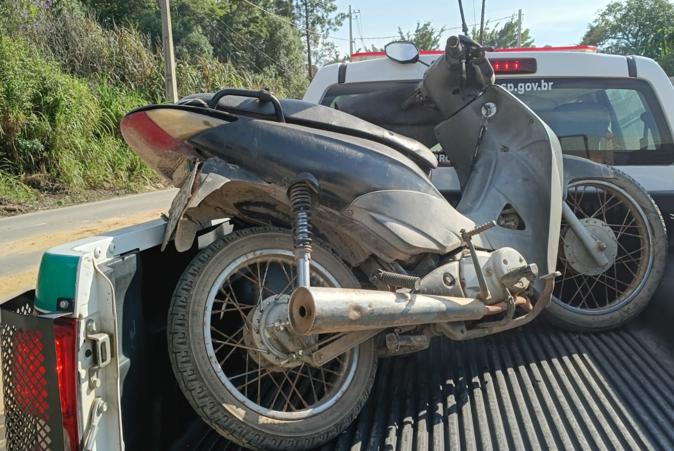 Durante as abordagens, os agentes identificaram veículos com sinais de adulteração nos elementos de identificação. Em uma das ocorrências, o condutor abandonou a motocicleta e deixou o local ao perceber a aproximação da viatura. Após vistoria, foi constatada incompatibilidade entre a placa exibida e as características do veículo, resultando na apreensão do veículo.
