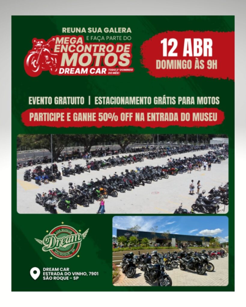 Com início às 9h, o encontro é gratuito e oferece estacionamento exclusivo sem custo para motos, reunindo participantes em um ambiente voltado à troca de experiências, estilo de vida e paixão pela estrada.