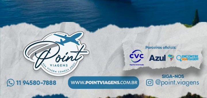 Reconhecida pela seriedade, compromisso com o cliente e atendimento personalizado, a empresa se consolida como uma das referências quando o assunto é turismo. Com parcerias oficiais com grandes nomes do setor, como CVC, Azul Viagens e Encontre Sua Viagem, a Point Viagens oferece pacotes completos, pensados para atender diferentes perfis de viajantes.