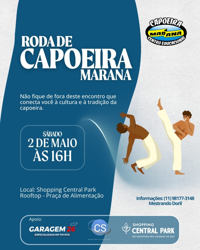 O Shopping Central Park, localizado entre as cidades de Vargem Grande Paulista e Cotia, recebe no próximo sábado, dia 2 de maio, a Roda de Capoeira Marana, um momento especial de movimento, música e tradição em um cenário único: o rooftop, área externa da Praça de Alimentação.